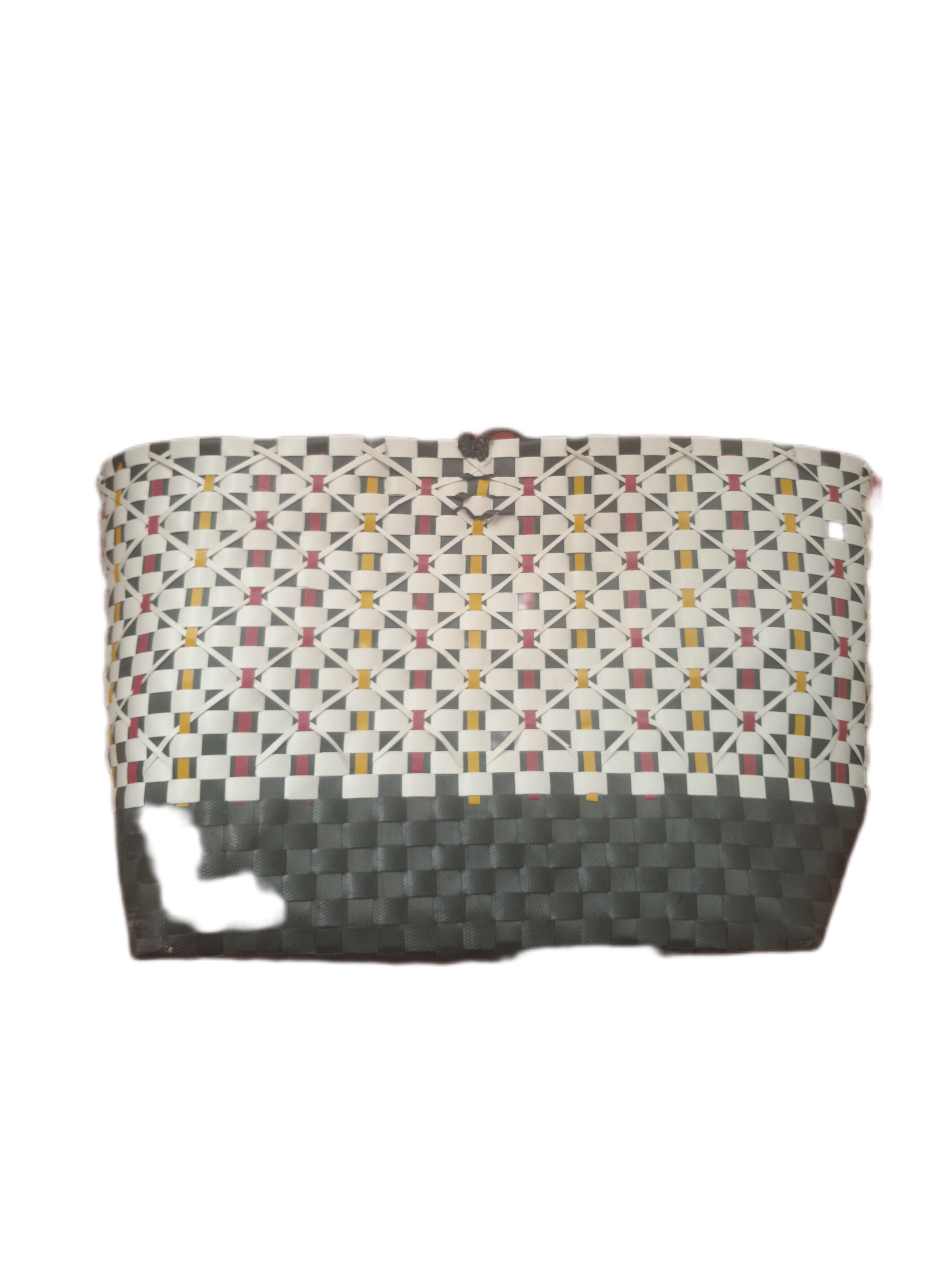 سبد حصیری دستبافت تاروپودی تسمهای طرح جا کتابی